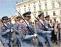 relève de la garde , composée de 3OO gardes dont 4 femmes. A midi a lieu l’échange des bannières au rythme de